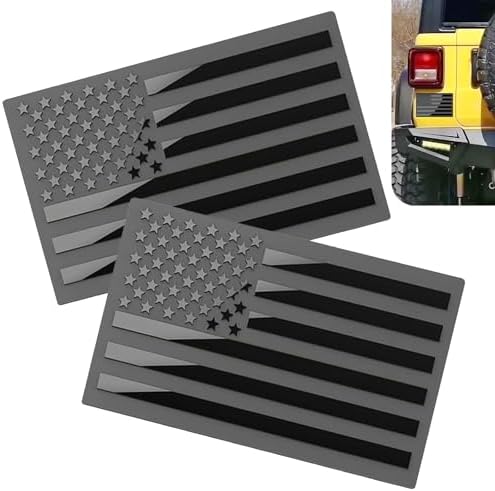 2PCS American Flag Emblem Decal Stickers, Embossed 3D Metal American Flag Stickers, 5" x 3" Bumper Decals, Auto Fender Badge, Universal for Car, Sedan, SUV, Motorcycle (Black)