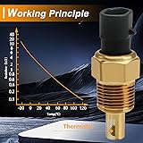 - 【Reliable Material】: This engine coolant temperature sensor operates on the principle of thermal sensitivity. As for the material of the thermo sensor, it uses high-quality materials and uses brass as the contact part for cooling water, making it more sensitive. Additionally, the plug part also uses nickel coasted copper material, allowing it to transmit signals more quickly. Its high-quality materials not only improve its work efficiency, but also greatly extend its service life.