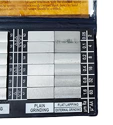 - Features: These Surface Roughness is used to compare and determine the degree of the surface finish by comparision method and eye estimation or magnifying glass. This set contains standards for the six most important maching methods in the prevalent "AA" values. These surface rouhness is used to compare and determine the degree of the surface finish by comparision method and eye estimation or magnifying glass. As standardized in ISO2632/I-1975; Specifications meet S.A.E. and military specifications for visual and tactile inspection. All 30 specimens are calibrated in u" AA(Arithmetical Average) and in the metric eqaivalens um Ra. The surface rough contrast blocks is made of 45 super Carbon Steel except the GCr 15 which is using to plat lapping the sample block. Specifications: This kit has 30 specimens, each 7/8“×3/8” and contains: 3 Specimen Flat Grinding - 2, 4, and 8μ“ AA; 3 Specimen Reaming - 16, 32, and 63μ” AA; 6 Specimen Grinding - 2, 4, 8, 16, 32, and 63μ“ AA; 6 Specimen Horizontal Milling - 16 , 32, 32, 63, 125, 250, and 500μ” AA; 6 Specimen Vertical Milling - 16, 32, 63, 125, 250 and 500μ“ AA; 6 Specimen Turning - 16, 32, 63, 125, 250 and 500μ” AA.