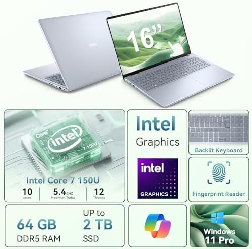 Dell Inspiron 16 Touchscreen Business Laptop Computer, Intel Core 7 150U(up to 5.4 GHz), 64GB DDR5, 2TB SSD, 16:10 FHD+ IPS Display, Win 11 Pro, Copilot Key, Fingerprint & Backlit KB, Accessory Kit
