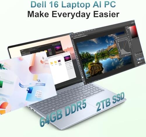 Dell Inspiron 16 Touchscreen Laptop – Portable, Powerful & Productivity-Ready This Dell laptop touchscreen combines Intel® Core 7 150U, 64GB DDR5 RAM, and 2TB PCIe SSD for smooth multitasking, fast app launches, and instant file access. The 16" FHD+ display with 16:10 aspect ratio gives extra workspace for spreadsheets, coding, design, and creative projects. Featuring AI Copilot, fingerprint reader, and Windows 11 Pro, this Dell Inspiron laptop enhances productivity and security for professionals, students, developers, designers, and content creators. Lightweight and portable, this Dell 16 laptop is perfect for office, classroom, café, or remote work environments. Ideal among business laptops and college student laptops that need power, portability, and versatility. ➤ KEY SPECIFICATIONS Brand: Dell Model: Inspiron 16 Operating System: Windows 11 Pro Processor: Intel® Core™ 7 150U (10-core, up to 5.4GHz) Graphics: Intel® Graphics (Integrated) Memory:32GB/ 64GB DDR5, 5200 MT/s Storage: PCIe NVMe SSD – 1TB/2TB/4TB Display: 16" FHD+ (1920x1200), 16:10 aspect ratio, 300 nits, WVA/IPS, Anti-Glare, ComfortView Plus Connectivity: Wi-Fi 6E (802.11ax, 2x2, MU-MIMO), Bluetooth® wireless card Ports: 1x HDMI 1.4, 2x USB 3.2 Gen 1 Type-A, 1x USB 3.2 Gen 2(10Gbps) Type-C (DP 1.4, PD), SD Card Reader, Universal Audio Jack, Power Jack, Wedge-shaped Lock Slot Camera: Integrated FHD (1080p) Webcam with Dual Digital Microphone Array and Noise Reduction Keyboard: Ice Blue Backlit Copilot Key Keyboard, Numeric Keypad Audio: Dual Tuned Speakers Power Adapter: 65W AC Adapter Dimensions: 14.05" (W) x 9.87" (D) x 0.64–0.78" (H) Weight: 4.37 lbs (1.98 kg) Color: Ice Blue Note: Item is new. Opened only to upgrade hardware to advertised specs