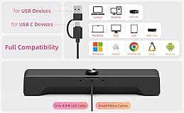 - Computer Soundbar Speakers for Desktop PC Mac, USB Plug-in, Wired, External Speakers for Laptop Desk Monitor, RGB Gaming Sound bar with HD Stereo Loud Sound, Punchy Bass, Volume Knob, USB C Adapter