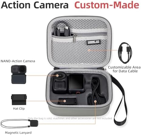 1. Compatible models: OSMO Nano. Made from high-quality PU material, it is precisely designed to fit perfectly. It has excellent pressure resistance and impact resistance. 2. The inner side is made from high-quality velvet material, effectively preventing damage to the lens and screen. It keeps the camera in clear condition at all times. 3. Dustproof, waterproof, and stain-resistant design: Made from durable, high-density PU material with superior waterproof performance, it offers waterproof, dustproof, and scratch-resistant functionality, providing comprehensive protection for the camera. The three-dimensional design covers the lens area, effectively resisting impacts and scratches, ensuring safe use even in outdoor or harsh environments. 4. Ultra-lightweight/compact and portable: Weighing only 50 grams, this lightweight design is easy to carry. It is an ideal choice for storing your camera during travel or outdoor activities. 5. Package contents: 1 small storage case.+Hanging rope*1 + hook*1 Note: The camera shown in the photo is for reference only and is not included in the product.