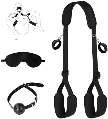- 【💯High-Quality Comfortable BDSM Sex Toys Sets】This sex set comfortable & durable and includes handcuffs, leg straps, a blindfold and an ABS gag. Adjustable leg straps are more suitable for any size, you can easily find a very suitable angle for you to easily explore your partner's G-spot, better please her, removable handcuffs、ball gags and blindfold for your sexual experience adds a new level of more fun. Nylon straps with tight fabric, firm, non-pilling, safe and odorless