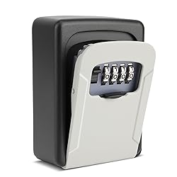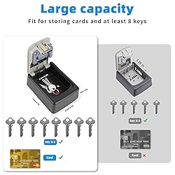 【STURDY SECURITY LOCKBOX】Key storage lock box is made of high-quality aluminum alloy and steel to prevent scratching, and shutter door to protect combination dials from weather. 【EASY TO USE】The lock box code is pre-set with 0-0-0-0, With 10,000 possible combinations, our lock features high security and is extremely difficult to break.The reset mechanism makes it easy to personalize your password anytime. 【WEATHERPROOF & CORROSION-RESISTANT】The lockbox is rustproof and corrosion-resistant for indoor and outdoor use. 【LARGE CAPACITY】The key lock box has a large internal storage space for safely storing up to five standard (2 inch) house keys . When traveling for business or leisure, you may store your keys in a key lock box for emergency unlocking. Never worry about losing your keys. 【MULTIPLE APPLICATION】Our Key lock box is perfect for Airbnb realtors, cleaners, pet sitters,and more.Suitable for home, office, garage, apartment entrance, and rental house's key storage.
