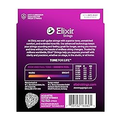 LONGEST-LASTING TONE: Made with phosphor bronze wrap wire and our proprietary NANOWEB Technology, these strings deliver a rich, full-bodied tone with a comfortable, smooth feel LEADING PLAYERS: Whether on stage, in the studio or jamming at home, Elixir Strings are trusted by millions worldwide for their consistently brilliant tone, from our light strings to heavier gauges STABLE & RESISTANT: Experience that fresh-out-the-box sound every time, thanks to our advanced technology that protects the entire string from sweat, corrosion, humidity and rust MANUFACTURED IN THE USA: Every set of Elixir Strings is lab- and field-tested in our state-of-the-art facility. Engineered for less frequent string changes and more connecting with your music CONTENTS: 4 Pack of Elixir Strings, Acoustic Guitar Strings, Phosphor Bronze with NANOWEB Technology, Longest-Lasting Rich and Full Tone with Comfortable Feel, Light 12-16-24-32-42-53