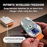 - Model O3 Wireless featuring InfinitePlay is the first true wireless gaming mouse you never need to plug in. Hotswap between 2 batteries for unlimited play. Go from 0% to 100% battery in seconds with up to 130 hours of life per charge. The unique Guardian Battery System keeps your mouse powered when you eject the swappable battery, eliminating mid-fight disconnects. Features 130M click optical switches and a 30K DPI sensor packed into a 66g ultralight design for peak performance.