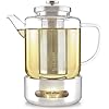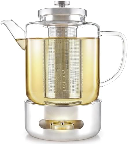 Teabloom Joyful Warmth Teapot with Tea Warmer – 50 oz (6+ Cups) Hand-Blown Borosilicate Glass, Stainless Steel Loose-Leaf Infuser, Heat-Resistant Kettle, Elegant Gift Set for Tea Lovers