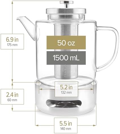 - Generous 50 oz Capacity with Flexibility – Brew 6+ cups for gatherings or just a few cups for yourself, thanks to the deep stainless steel infuser basket that adapts to any serving size.