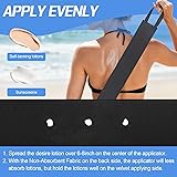 High-Efficiency Lotion Applicator Set: Our package Includes 1 pre-installed roller + 1 replacement roller for the back lotion applicator, 1 tanning applicator belt, and 2 hooks. The foam applicator roller for back is specifically designed for evenly applying lotion, cream, and self-tanning products to the entire back. It effectively locks in lotion, preventing drips or runs Replaceable Foam Roller: Featuring textured foam rollers that distribute products evenly without absorbing them, this versatile back sunscreen applicator includes two rollers (one fixed, one spare) for effortless replacement. Easy-clean rollers ensure uniform application without trapping lotion Portable Folding Design: Effortlessly apply lotion or ointment without twisting your body, keeping both hands clean. One-button switch between compact folded mode (11.42in/29cm) and extended mode (18.31in/46.5cm). Roller length (4.4in/11.2cm) ensures large-area application for streak-free coverage on back, legs, and feet. Features a compact folding handle for easy storage; ideal for travel, gym bags; perfect for vacations, outdoor activities, or daily skincare routines Senior-Friendly: The ointment applicator's non-slip grip ensures stable control, while the lock mechanism prevents accidental collapse for reliable use. This back care lotion applicator provides a secure hold and precise control for seniors, making self-care comfortable for those with limited mobility Multi-Functional Use: This long-handled roller applicator is designed to help both men and women independently apply back lotion, effectively addressing dry skin, back itch, and hard-to-reach areas. Effortlessly apply lotion, sunscreen, tanning lotion, moisturizer, or ointment evenly—no twisting, straining, messy hands, or assistance needed