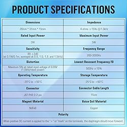 Pre-installed with a JST-PH2.0 connector cable, it easily connects to compatible motherboards without soldering, greatly simplifying DIY assembly or repair Rated at 3W and 4 ohm impedance, it features an internal magnetic design and a non-paper diaphragm, ensuring clear and stable sound, making it ideal for 3.3V/5V low-voltage circuits Measuring a standard 28*31*15mm (1.1*1.2*0.59-inch) size, the full-range cavity design and compact rectangular form factor make it easy to install in various electronic devices and prototyping projects Perfectly compatible with Arduino, Raspberry Pi and other development boards, it's an ideal replacement for speakers in electronic toys, robots, game consoles, and advertising projects Includes two high-quality speakers, packaged in a custom protective box for safe shipping. A two-pack provides backup options or allows for multiple projects simultaneously, making it a practical choice for electronics enthusiasts and repair technicians