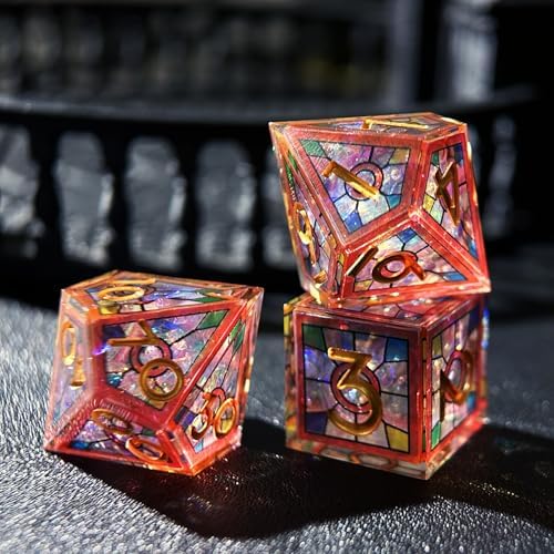 - 🎲 Handcrafted Dual-Layer Resin Artistry Each die is meticulously created through two-stage casting: a colorful core layered under crystal-clear resin for a 3D stained-glass effect that dazzles in light. Handcrafted from premium layered resin material with sharp edges for authentic gaming experience.