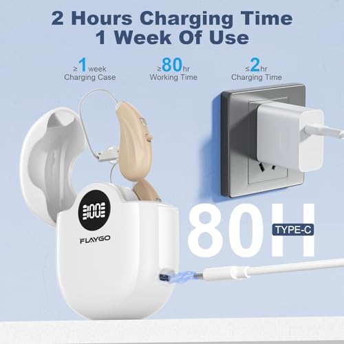 - Long Life, Fast Charging:The rechargeable hearing aids have a usb-c fast charging design, a single charge of 2 hours, the charging box can be recycled 4 times, a total of 80 hours of smooth listening, allowing a week of continuous use, without frequent charging. Whether at home or on the go, the long-lasting battery life of the hearing amplifiers provide you with a stable connection and allows you to hear clearly.