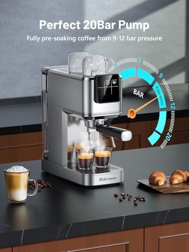 - Enjoy Espresso Coffee At Home: The RELEXNOW coffee machine with milk frother allows you to make all your favorite espresso-based coffees.You can enjoy a barista-brewed latte, cappuccino or macchiato at home.Stainless steel appearance, stylish and durable, ideal for any size kitchen.This compact espresso coffee maker is perfect for birthday presents, Christmas presents, mom presents, dad presents and wife presents.