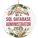 - Celebrate Your First Christmas with Monizilucky Ceramic Ornament Commemorate your career milestone with this ceramic ornament featuring the First Christmas As a Sql Database Administrator 2025 quote. Funny gift for Sql Database Administrator, new professionals, or Christmas enthusiasts, this personalized Christmas ornament adds a festive, profession-themed touch to Christmas trees, home decor, or office displays. Ideal for self-gifting to celebrate your new career or as a thoughtful holiday present from family, friends, or colleagues. Elegant & Durable Design Crafted from high-quality ceramic with a glossy finish, this festive ornament uses UV printing for vibrant, fade-resistant designs on both sides. Lightweight with an included loop, it’s funny gift for Christmas tree decor or as a holiday keepsake. Note: Actual color may vary slightly due to monitor or light effects. How to Use: Hang on a tree, wreath, or display; avoid rough handling to maintain finish. Meaningful Holiday Gift This 2025 Christmas gift is ideal for Secret Santa, Christmas parties, or as a memorable keepsake for new professionals. Made with safe, non-toxic materials, it’s a sustainable choice for festive shoppers. Care Tip: Store in a cool, dry place to preserve quality. Add this Monizilucky Ceramic Christmas Ornament to your holiday decor and celebrate your career milestone in style!