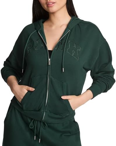 Victoria's Secret Women's PINK Logo Full Zip-up Sweatshirt, Deep Forest, XL