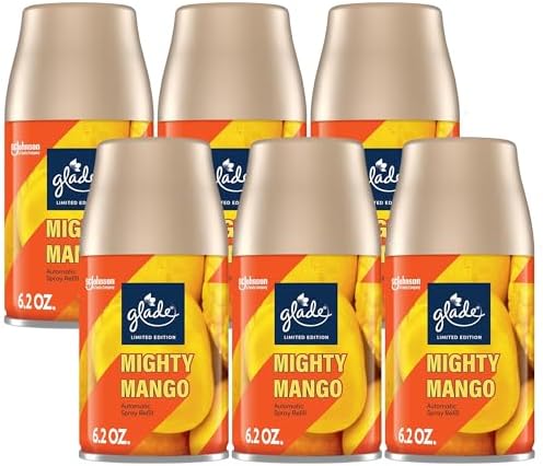 Glade Automatic Spray Refill, Mighty Mango, Scented Air Freshener for Home and Bathroom, 6.2 Oz, 6 Pack