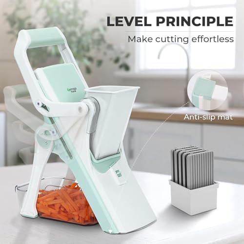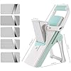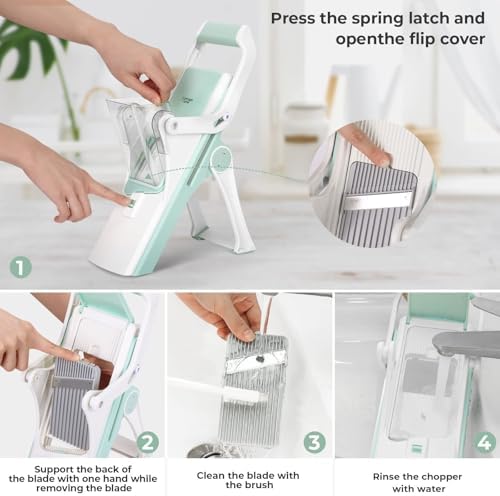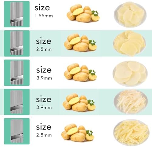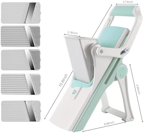 - 4 Interchangeable Blades: Includes straight slicer, julienne cutter, strip blade, and waffle slicer to handle a wide variety of fruits and vegetables.