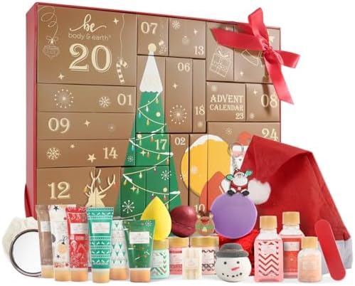 Merry Christmas! Deck the Halls with Bubbles and Bliss! The perfect way to count down to Christmas, or gift yourself or a loved one 24 days of festive pampering. After all, nothing says 'Merry Bathtime' quite like our Christmas Advent Calendar! Body & Earth's festive advent calendar will be your new favorite gift to give for the holidays! Look no further for a gift that anybody would be excited to receive! Bring in the holidays with this one-of-a-kind advent calendar! This spa Christmas day gift complete with an adorably illustrated gift box and filled with lots of holiday surprises! Each day, discover a new self-care treat behind each door. From bath bombs to body lotions and many of our most popular products, every piece is an irresistible surprise - What's not to love? This unique gift is sure to bring tons of joy, and it's perfect for everyone from your wife, mother, daughter, friends, co-workers niece to your boss. Ho ho ho! 24 Pcs Christmas Day Gifts List: Shower Gel*2 | Shampoo Bar*1 | Bath Salt*1 | Hand Lotion*4 Body Lotion*2 | Foot Cream*2 | Bath Bomb*1 | Body Scrub*1 | Soap*1 Bath Bomb*1 | Loofah*1 | Christmas Hairpin*1 | Nail File*1 Christmas Hat*1 | Makeup Sponge*1 | Pair of socks*1 | Santa Key Buckle*1 |Mirror*1