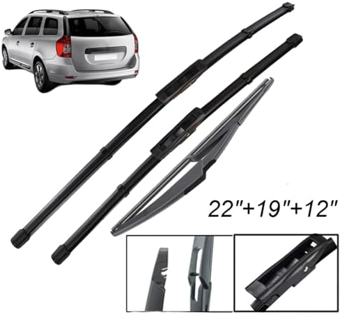 Windshield Wipers for Dacia Renault Logan 2 2016-2019 22"+19"+12", HD All Weather Front Rear Wiper Blades Set Car Accessories