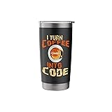 Cool code tshirt for web developers, programmers, front-end or back-end, software developers, software engineers or just anyone who loves the internet,C, C++, C#, CoffeeScript, Delphi, HTML, Java, JavaScript developer, jQuer, and computers. I Turn Coffee Into Code Coffee Lover Coder Web Developer Dual wall insulated: keeps beverages hot or cold Stainless Steel, BPA Free Leak proof lid with clear slider