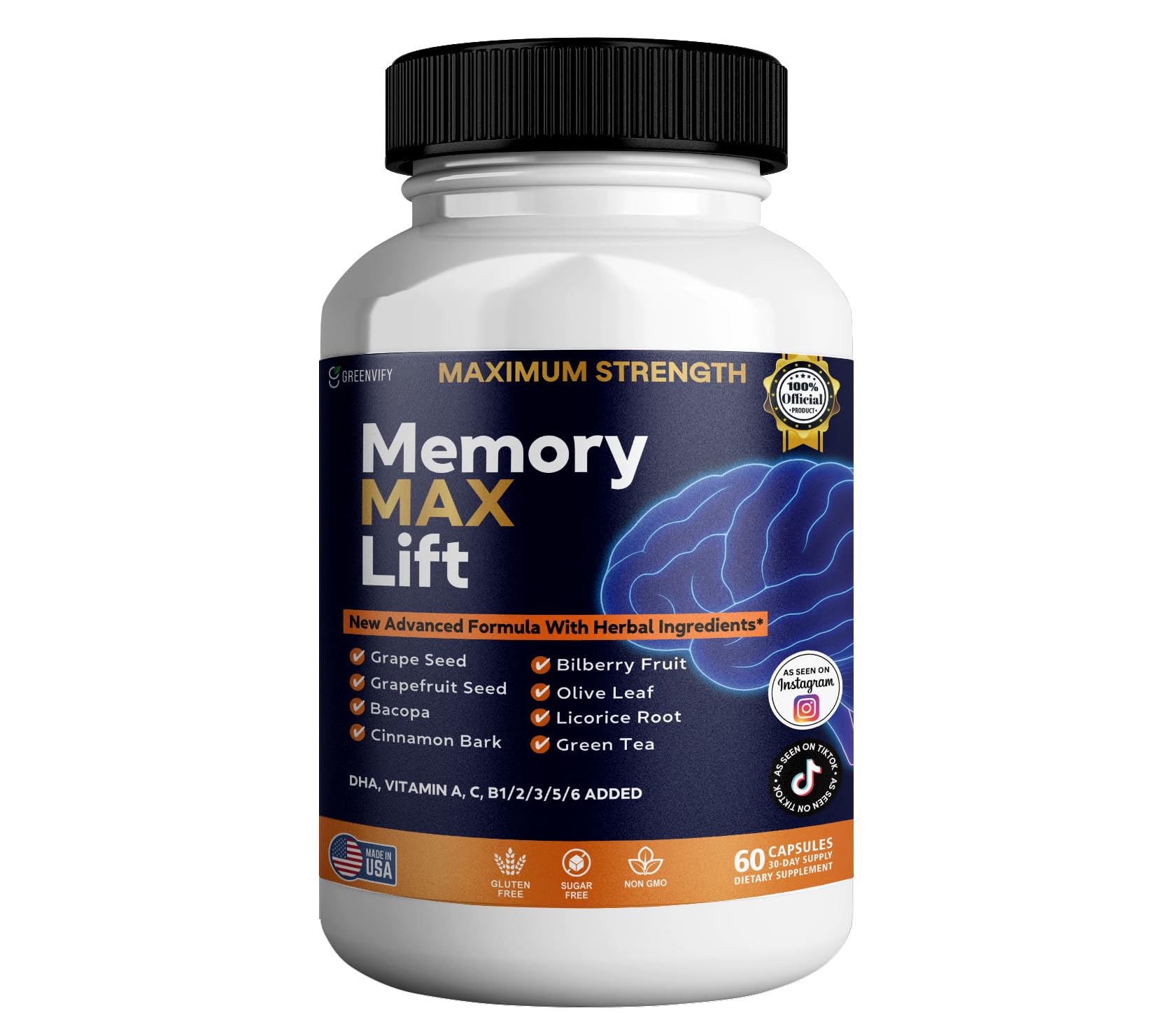 Memory Support Formula: Advanced supplement containing essential vitamins A, C, D, E and B Complex for cognitive function Key Ingredients: Contains DHA, Bacopa and Grapefruit Seed extract to support brain health and memory function Convenient Dosage: 60 capsules per bottle providing a full month supply of daily memory support supplementation Brain Health Support: Comprehensive blend of nutrients designed to maintain cognitive performance and mental clarity Quality Manufacturing: Carefully formulated supplement produced under strict quality control standards for optimal effectiveness