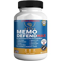 - Memo Defend Max Memory Support Supplement, 60 Capsules, with Vitamins A C D E B Complex, DHA, Bacopa, Grapefruit Seed