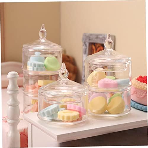 Cabilock Miniature Glass Jar with Lid Scale Clear Candy Container for Dollhouse Decor Smooth Glass Material Tiny House Accessory for Art Craft Storage and Mini Landscaping Display