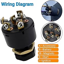 - Boat Ignition Switch with 2 Keys Ignition switch for most OMC inboard/outboard applications;Push to choke feature eliminates need for separate choke switch; * Switch Positions: 3 Position Off - Run - Start;* Rated Choke: 7 Amp & 12V DC;* Rated lgnition: 15 Amp & 12V DC;* Rated Solenoid: 30 Amp & 12V DC;* Terminals: 6 Pin. Replacement for Sierra MP41000, Mercury Marine 87-88107, 87-17393, 87-88107A5, and SEA-Dog 420381-1, Sierra MP41000, MP52000 Upgrade your boating experience with our premium **Boat Ignition Switch with 2 Keys**. Designed specifically for marine applications, this **Marine Ignition Starter Key Switch** features a robust 6-pin, 3-position rotary design, making it the ideal choice for both inboard and outboard engines, including popular models from Johnson and Evinrude This **universal ignition switch** is engineered for reliability and ease of use, ensuring your boat starts smoothly every time. The push-to-choke feature provides added convenience, allowing you to start your engine effortlessly while maintaining safety on the water. Each package comes complete with two keys, providing a backup option or allowing you to share with a fellow boater. Whether you're replacing an old ignition or upgrading your system, this **Ignition Starter Switch** is compatible with a wide range of boats and fits seamlessly into various setups. Make your boating trips worry-free with our durable and efficient ignition switch, perfect for any marine enthusiast. Package IncludeIgnition Start Switch with 2 Keys6 PCS Ring terminal blocks Elevate your marine adventures today with our Boat Ignition Switch—where quality meets performance!