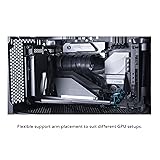 Three Height Adjustments for Optimal Clearance: The latest V4 version of the bracket features a larger cutout for the GPU I/O, significantly reducing interference with HDMI and DisplayPort cables. This thoughtful design allows you to angle your GPU forward for improved cooler clearance or backward to showcase its aesthetic appeal. Dual-Angle Tilt Function: In the neutral position, airflow through the GPU creates turbulence due to nearby components. Tilting the GPU forward improves airflow, allowing cooler air to enter and warm air to exit more efficiently, enhancing thermal performance. High-Speed PCIe 5.0 Riser Cable: Included 200mm PCIe 5.0 riser cable, designed to support data transfer rates of up to 32 Gbps—double the bandwidth of PCIe 4.0. Anti-Sag Support Arm for Enhanced GPU Stability: Includes a support bracket that attaches to a motherboard standoff, effectively preventing GPU sag and ensuring stability. Integrated RGB lighting for a dynamic visual appeal, enhancing the overall aesthetic of your build. GPU Installation Tip: Press the GPU downward during installation so the side latch automatically locks into the PCIe slot. When removing the GPU, be sure to continuously press the release tab beside the PCIe slot while lifting the card. Failure to do so may cause the latch to spring back and damage the graphics card or slot if pulled out by force. GPUs featuring an overclocking button may conflict with the adjustable structure of the GPU support bracket. Please remove the overclocking button prior to installation to avoid interference. GPUs equipped with three full-size DisplayPorts may contact the slot when the mount is installed at a slight angle. Compatibility with Most ATX Cases: Designed to fit cases supporting ATX motherboards, this GPU kit requires at least 6 PCIe slots for standard vertical mounting and 7 slots for tilted configurations, ensuring broad compatibility with modern builds. The bracket can accommodate thick GPUs up to 4 slots, making it versatile for various setups. Updated Standoff Screws: The kit now includes #6-32 thread screws instead of M3 screws, improving compatibility with various setups. All current units reflect the latest design. Refined Frame Design: The frame design has been enhanced to facilitate installation with certain third-party GPU brackets, addressing fit issues encountered with the previous version.
