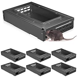 Catching Mice Effectively: you will receive 6 pieces of clear top mouse traps, they are effective in catching mice, they have a non contact design and are designed for better live capture and release of mice Size Information: humane mouse traps measure approx. 10.24 x 6.3 x 1.97 inches/ 26 x 16 x 5 cm, enough size for small mice and young rats, with high capture rate; Note: they may not hold up well in wet areas such as basements or bathrooms Sturdy and Long Lasting: mice traps for house indoor is made of galvanized sheet material, safe, odorless, strong and wear resistant, will not easy to break, long service life, beautiful appearance, suitable for many kinds of occasions to use Easy to Use: simply add the bait to the inside of the outdoor mouse traps, close the lid, and place the trap in an area where you have seen rodent activity; You can leave the lid open for easy release after capture Widely Available: multi catch mouse trap can be applied in residential, commercial areas or industrial buildings, as well as areas where rodenticides or traps are prohibited, our mice traps will secure your family and home from rodents