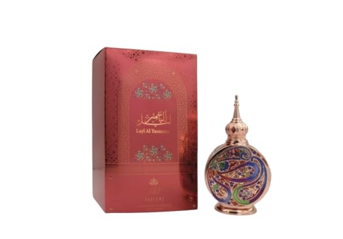 Layl Al Yasmeen Luxury Arabic Perfume oil, Oriental Fragrance, Red and Gold Decorative Glass Bottle with Rose Gold Crown Cap 20 ml for women