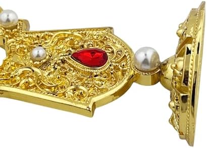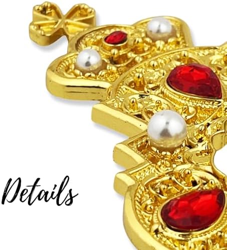This Byzantine Orthodox Catholic icon depicts Jesus Christ the Teacher, a powerful symbol of wisdom and faith. The icon is set within a gilded Greek cross crowned and decorated with faux crystals and pearls, creating an ornate and reverent design. Crafted from gold tone metal with a protective glass covering, the cross measures 7 1/4 inches tall by 3 1/4 inches wide, with the icon portion sized at 1 5/8 inches. Presented in a beautiful gift box, this jeweled cross makes a meaningful devotional piece or a thoughtful gift for religious occasions.