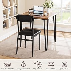 Ideal for 2:this versatile dining table set fits seamlessly into kitchens, dining rooms, open living spaces, home offices, bars, restaurants, coffee shops, and small apartments. It offers ample room for gatherings, dinners, afternoon tea, or work sessions, effortlessly transitioning between dining, office, computer, workstation, breakfast nook, and relaxation modes. Perfectly accommodating diverse needs and lifestyles. Experience luxurious comfort:with our upgraded seat cushions and ergonomic backrests, designed for extended sitting comfort during meals, work, or leisure. Crafted with sturdy metal frames for ultimate durability, these seats offer a superior level of comfort beyond traditional chairs and benches, creating a cozy ambience for any occasion. Enjoy stability and durability: Crafted from high-quality MDF tabletops, reinforced metal frames, and upgraded chair cushions, our set offers robust support. Enhanced with additional steel bars on both tables and chairs, it securely holds up to 550 LB, ensuring stability and reliability for years to come." Elevate your home decor with our unique and stylish dining table and chair set. Each tabletop color – vintage, grey, or black – showcases a captivating grain texture, adding an elegant and sophisticated touch to your space. Perfect for enhancing your home's ambiance and creating a memorable dining experience. Maximize your home's space:The chairs effortlessly tuck under the table, freeing up valuable floor area. Perfect for small spaces, this set offers ample room for family activities, ensuring a clutter-free and functional living environment.