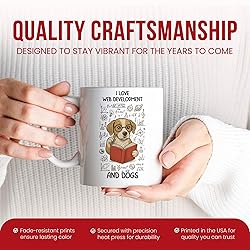 Web Development And Dogs Mug - Coding Enthusiast Coffee Cup - Developer Funny Gift From Colleagues - Tech Savvy Tea Mugs - Programmer Cups - 11 Oz Ceramic Gifts For Owners, Birthday, Him, Her