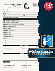 - WINDOW CLEANING SERVICE ESTIMATES Stay professional and organized with this Window Cleaning Estimate Book. Designed for window cleaners, gutter services, and pressure washing businesses, it provides space to record customer details, service descriptions, schedules, pricing, and approvals. A must-have tool to create clear, accurate quotes and keep your cleaning business running smoothly. Interior & Cover:122 Total pagesSingle-Sided pages60 EstimatesSuitable size: 8.5 x 11 inches (21.35 x 15.24 cm)Clear and bold font for readabilityDurable, attractive matte soft coverPrinted on high-quality white paper for a professional lookGET YOUR COPY TODAY!