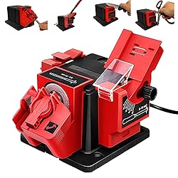 This Multi-task sharpener tool includes three working modules: SS drill sharpener - Sharpens all high speed steel drill bits from 7/64" to 3/8"(3mm to 13mm), Knife & Scissor Sharpener - Sharpens all straight edged knives & scissors and Chisel & plane sharpener - Regrinds chisel & plane blades from 1/4" to 2" (6mm to 51mm) wide Adjustable Sharpening Angle: Easily adjust the sharpening angle between 15° to 50° to suit the specific needs of each tool, ensuring optimal precision. Crafted from high-strength engineering plastic, this sharpener is not only durable but also resistant to abrasion and corrosion. Integrated heat dissipation holes prevent overheating, while sturdy anti-slip feet ensure it remains stable and secure during operation. The sharpener's compact design (6.38 x 5.63 x 6.1 inches) and light weight (3.26 lbs) make it easy to fit on any workbench or storage area, ideal for small workshops, garages, or homes where space is at a premium Easy to Use: Stop fiddling with that clunky old knife sharpening wheel. This adjustable electric protractor sharpener outperforms all others for performance and convenience. It's a great gift idea!