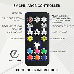 GSCOLER ARGB Controller Kit with 17 Key Remote Control, Mini RGB PC Fans Controller Kit - Multiple Lighting Modes Control for RGB Case Fans, ARGB Splitter, PC LED Strip, Air Cooler (SATA Power)