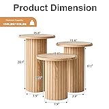 Lecafur HL 3-Piece Nesting Coffee Table Set, Modern Small Round Wood Side Tables, Fluted Drum Base, for Living Room Bedroom Apartment Small Space, Natual