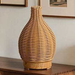 Premium Rattan Craft: Our rattan diffuser features a traditional handcrafted weave cover and wooden grain base, a beautiful natural decoration to any home, office or other public space. Compact and portable design, the essential oil diffuser with 150ml capacity is easy to operate and clean, helping you enjoy aromatherapy experience. Multi-function Aromatherapy Diffuser: The fragrance diffuser combines essential oil diffuser, home humidifier and night light. The 7 LED colors light works independently from mist function, suitable for night use. A specific color can also be chosen by pressing the Light Button of the aroma diffuser several ties. Wonderful gift for family and friends. Quiet Ultrasonic Technology: The oil diffuser for home adopts advanced ultrasonic technology, and it is extremely quiet without annoying noise that won't disturb you when you sleep or at work. Cool mist oil diffuser makes it safe for kids and pets. 7Hrs or more working time gives your home a long lasting, fragrant scent and let you revel in deep relaxation. 4 Timers and Auto Shut-Off Protection : You can set the scent diffuser according to your different needs, 4 Time Modes: 0.5H/1H/2H/Continuous On (around 6-7Hrs). The handcrafted rattan diffuser will automatically stop working and keep your unit from being overheat when water running out of or the time is up. Great Gift for All Occasions: This lovely aromatherapy diffuser is a good gift choice to loved ones and friends. Share happiness and express gratitude with this mesmerizing diffuser for essential oils on Valentine's Day, Christmas Day, Birthdays, Anniversaries, Mother's Day, Thanksgiving Day and more.
