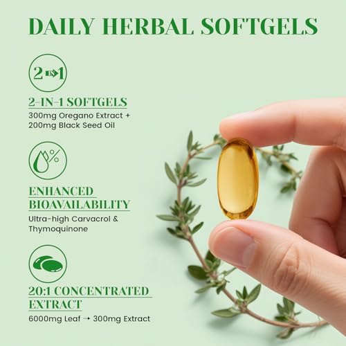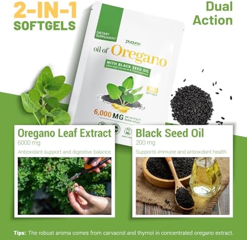 - 【Comprehensive Health Support】With the synergy of Oregano Oil and Black Seed Oil, this supplement helps support the immune system, promote digestive wellness, provide energy and vitality, and deliver antioxidant benefits. Carvacrol and Thymoquinone work together for optimal support.