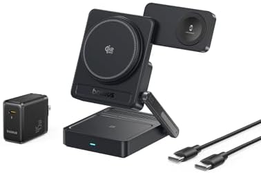 - Magnetic Precision & StandBy Ready: Qi2.2 certified and MagSafe-compatible magnetic charging station with auto-alignment, ensuring higher charging efficiency and a strong, stable connection with 16 N52M magnets. Fold it into stand mode to unlock the Apple StandBy features—view the time, photos, or widgets from your nightstand or workspace.
