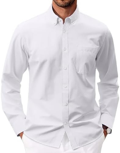 Men's Long Sleeve Dress Shirts Button Down Collar Shirts Slim Fit Untucked Casual Business Stretch Formal Shirt