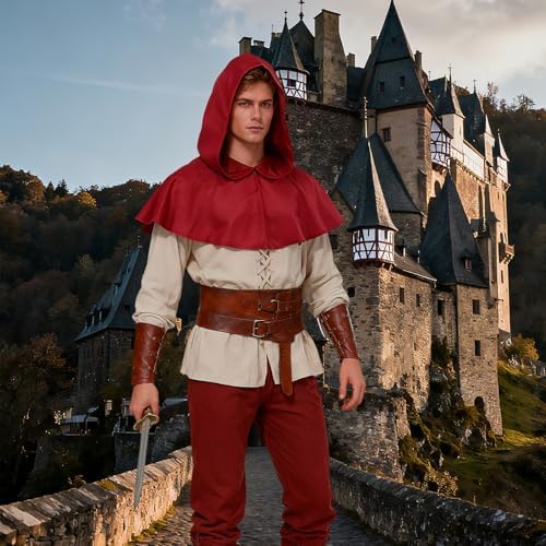 Medieval Cloak Hooded Shawl Halloween Riding Hood Shoulder Cape for Men & Women, Wicca Pagan Cosplay Poncho Costume
