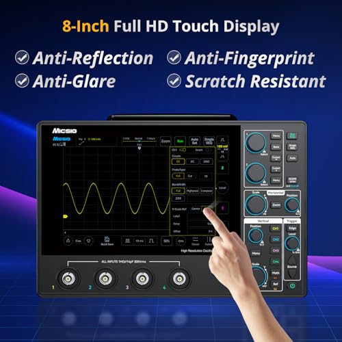 SainSmart Micsig 12bit High Resolution Tablet Oscilloscope MHO1, Portable Handheld with 4 Analog Channels 200MHz Bandwidth 1GSa/s Sampling Rate, 8” HD Touch Screen & 16000mAh Battery