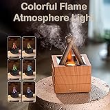 Flames Humidifier Essential Oil Diffuser, Aromatherapy Diffusers with 7 Colors Light & Remote, 280ml Bonfire Flame Humidifier Diffusers for Bedroom,Office,Home, Auto Shut-Off, Night Light (Wooden)