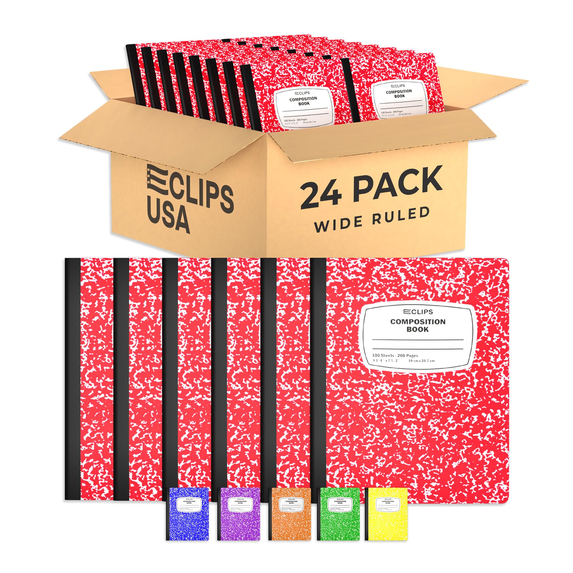 E-CLIPS USA Composition Notebook Wide Ruled Composition Notebooks Bulk Wide Ruled Notebook Paper Note Books For Schools Composition Books 80 Sheets 160 Pages 9.75” x 7.5” (3 Pack)