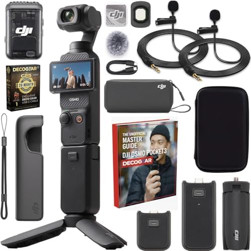 - BUNDLE INCLUDES: DJI Osmo Pocket 3 Pocket Gimbal Camera CP.OS.00000302.01 | Battery Handle | Mini Tripod | Wide-Angle Lens | DJI Mic 2 Transmitter (Shadow Black) | Windscreen | Clip Magnet | Type-C to Type-C PD Cable | Protective Cover | Wrist Strap | Handle With 1/4" Thread | Carrying Bag | DJI USA Authorized Warranty | CPS 2 Year Extended Warranty | Pack of 2 Deco Essentials 5ft 3.5mm Clip-On Mini Lapel Microphones | Deco Gear Hard Shell EVA Protective 10" Travel Organizer Storage Case