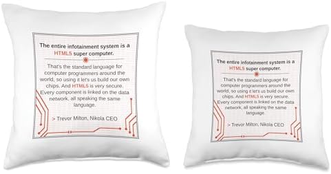 Bring Silicon Valley innovation into your home with this parody throw pillow. Honor Trevor Milton's HTML5 supercomputer with pcb motifs and an html5-orange binary background. This cushion makes the perfect ironic gift for coders, engineers, and anyone who loves a little tech humor. Both comfortable and motivational, it’s ideal for office chairs, couches, or startup lounges.