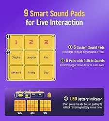 ✔️[Pocket-Sized & Lightweight]: Measuring just 16.3cm x 7.7cm and weighing only 260g, this audio interface slips easily into your pocket or bag. Perfect for outdoor live streaming, podcasts, karaoke, and mobile content creation without compromising professional sound quality ✔️[Studio-Quality Audio Processing]: This audio interface features a dual-core DSP+CODEC that delivers high-fidelity sound with less than 0.01% distortion, 24-bit/96kHz studio sampling, and ultra-low latency. Built-in noise reduction with high/low EQ and reverb controls lets you fine-tune your sound like a pro ✔️[9 Smart Sound Pads for Interaction]: Enhance your performance with 9 sound pads: 3 customizable pads record up to 15s in 24-bit/96kHz quality, and 6 built-in pads instantly trigger crowd-favorite effects. One-tap playback and real-time LED battery display ensure smooth control ✔️[Customizable Voice & Built-In Mic]: Adapt your voice with 9 levels of reverb, high/low EQ, and a preset button to save and recall your settings instantly. A built-in microphone, 3 noise reduction levels, and 48V phantom power provide flexibility for both casual and professional users of USB audio interfaces ✔️[Long-Lasting Battery & Safe Charging]: The 3000mAh rechargeable battery of the usb c audio interface provides up to 8 hours of playtime on a 4-hour charge. Type-C charging supports use while plugged in and works with adapters, power banks, and computers. Built-in protection prevents overcharging or over-discharging